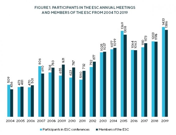 Figure 1. Participants in the ESC Annual Meetings and members of the ESC from 2004 to 2019
